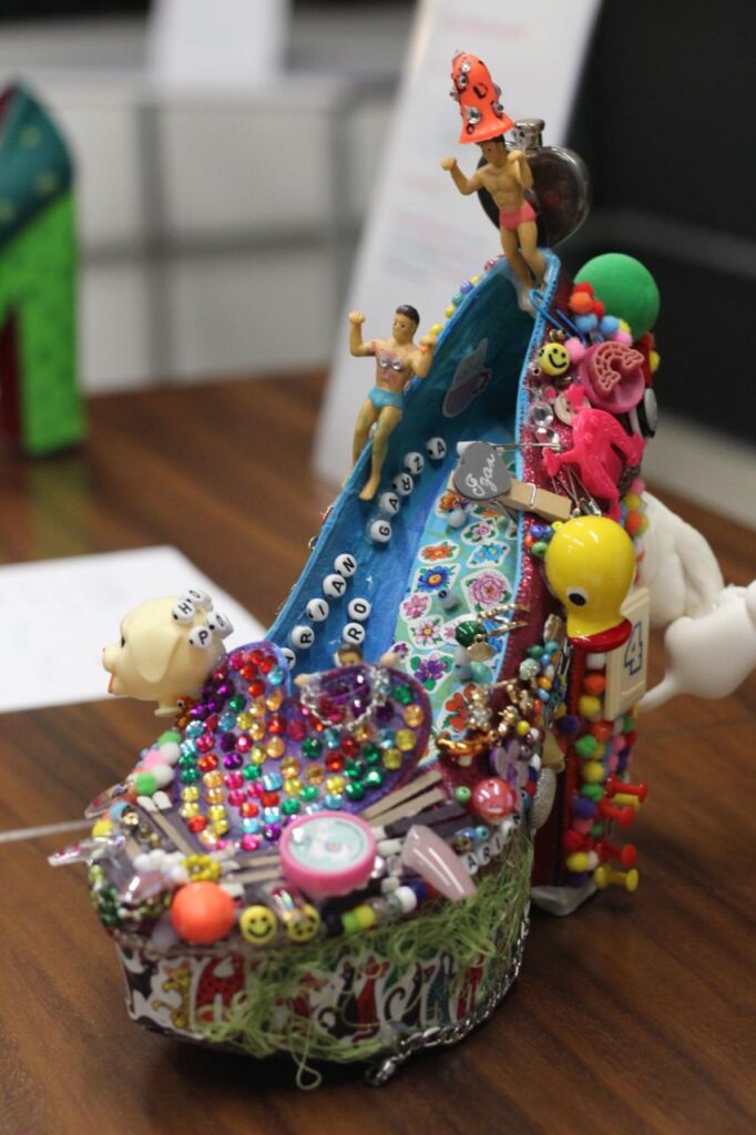 La actividad combinó moda, arte y cultura, incluyendo la exposición “El destierro del negro”, una muestra que destaca por su propuesta visual basada en colores y formas distintivas de la creadora.