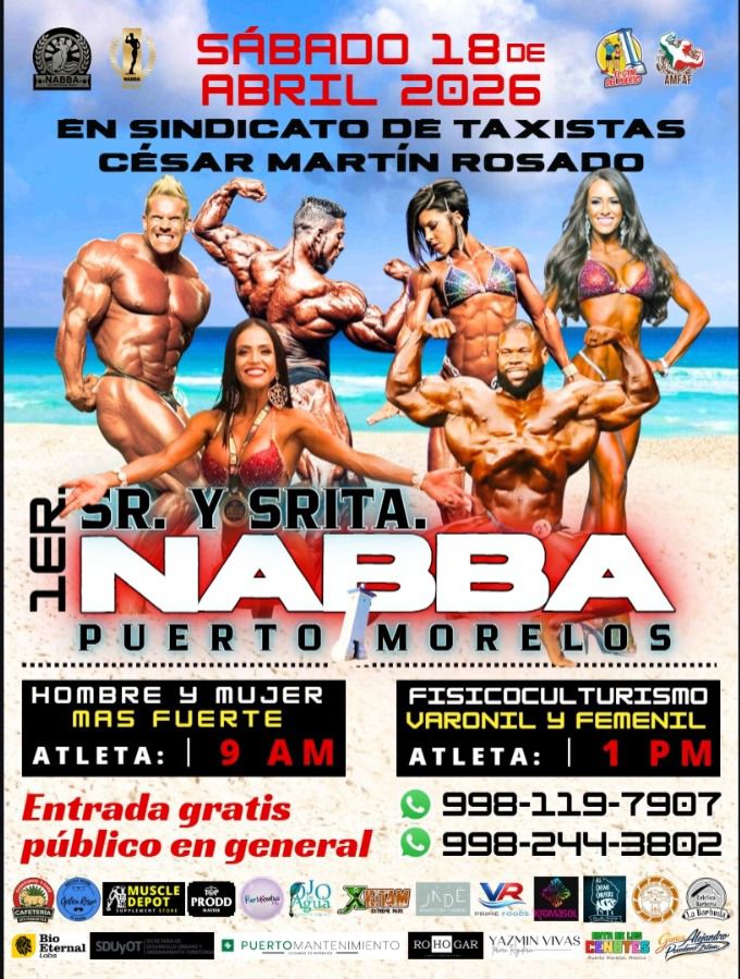 Durante el anuncio, Roger Ramírez Cervantes, encargado de NABBA Puerto Morelos, agradeció la oportunidad de realizarse este evento por primera vez en Puerto Morelos, el cual tendrá muchas actividades para todas las familias y detalló que la competencia incluirá categorías de fisicoculturismo varonil y femenil, así como la prueba de “Hombre y Mujer Más Fuerte”, esperando la participación de atletas locales y de la región.