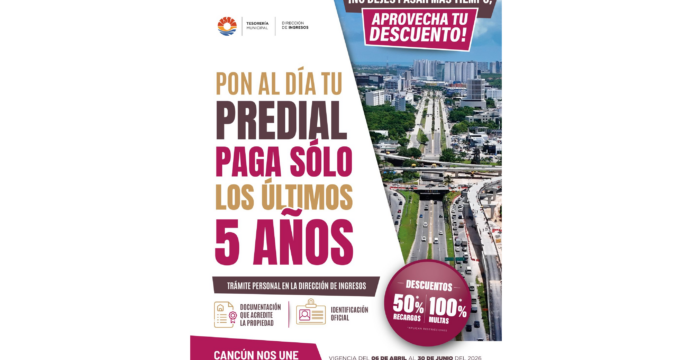 Ana Paty Peralta exhortó a los habitantes a que acudan a la Dirección de Ingresos o a las jornadas itinerantes semanales del programa “Día del Pueblo. Cancún nos une por la transformación”, ya sea en el Palacio Municipal o en algún domo en diferentes puntos de la ciudad, en donde también se instala un módulo de atención de dicha dependencia para que los orienten sobre el procedimiento y el monto a liquidar, lo que dependerá del valor catastral del predio.