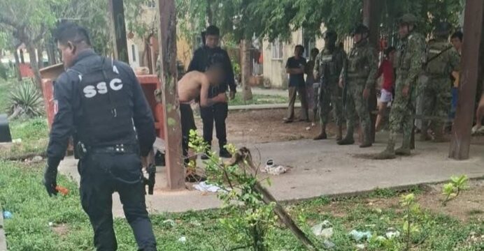 Vecinos solicitaron apoyo al número de emergencias 911 después de que atraparon al presunto ladrón acorralado en la calle Margaritas con República Dominicana, en la Región 251. Un residente, a través de sus cámaras de vigilancia, lo descubrió intentando entrar a una casa y grabó los daños que ocasionó en el inmueble.