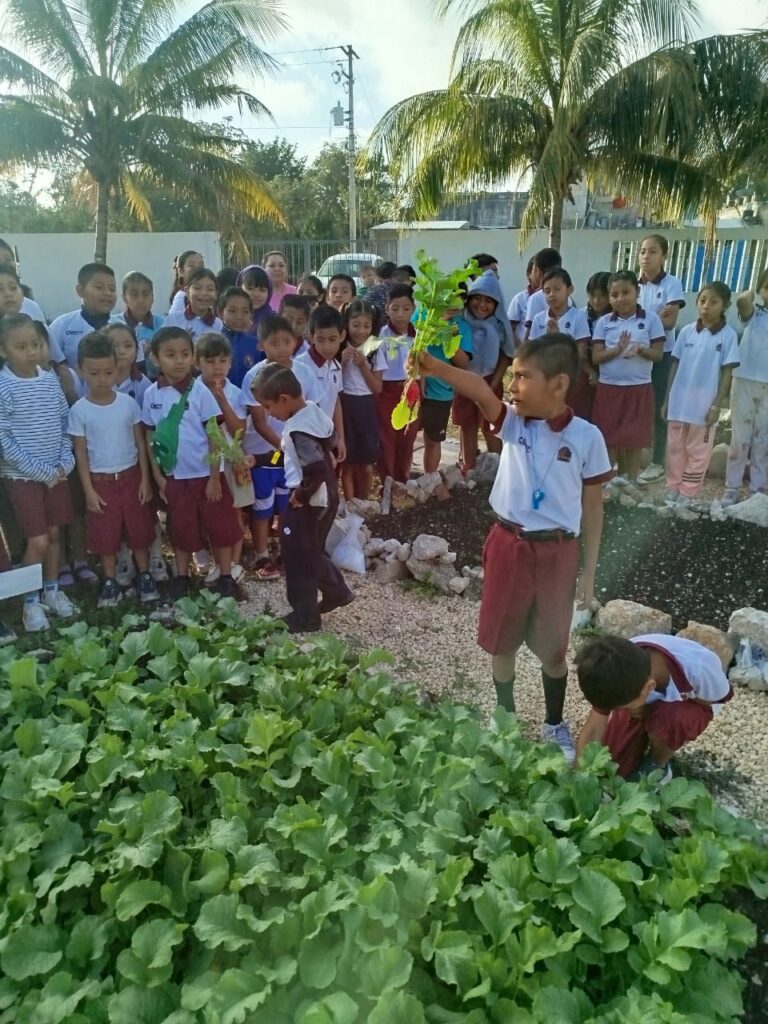 Con la instrucción de la presidenta municipal, Ana Paty Peralta, de promover acciones que contribuyan al bienestar integral de la niñez, la directora general del Sistema DIF Benito Juárez, Marisol Sendo Rodríguez, informó que la escuela primaria “Tenochtitlán” de la colonia México, se sumó a esta estrategia mediante la implementación del “Huerto escolar”, con la participación activa de madres y padres de familia, personal docente y alumnado.