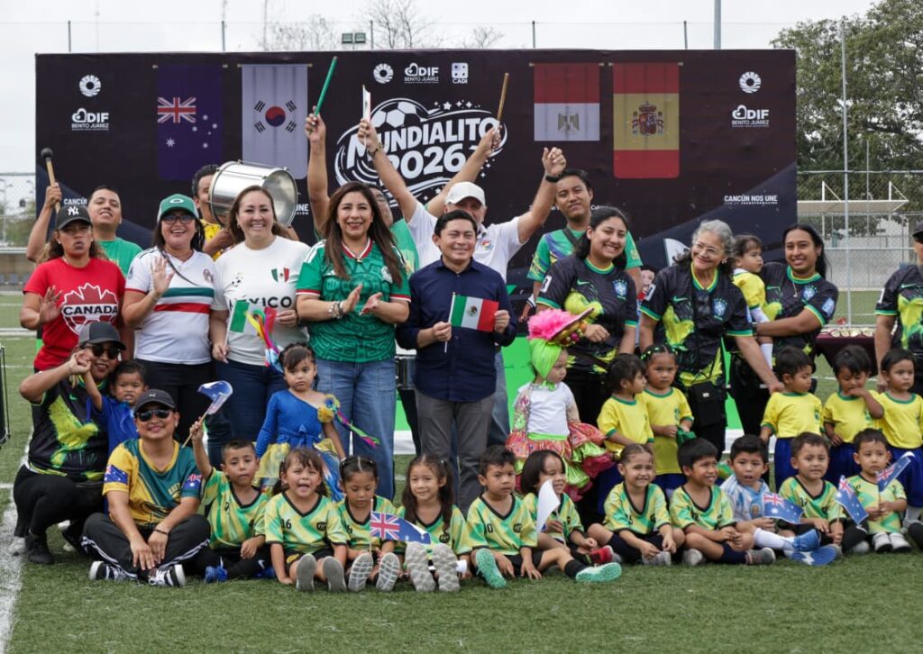 Cancún, Q. Roo.– En un ambiente lleno de entusiasmo, juego y convivencia, el Sistema DIF Benito Juárez llevó a cabo el “Mundialito 2026”, una actividad diseñada para impulsar el desarrollo integral de la niñez, fortalecer valores y promover la unión familiar, con la participación de alumnas y alumnos de los Centros Asistenciales de Desarrollo Infantil (CADI) y los Centros de Asistencia Infantil (CAI), en el campo de fútbol “Cozumel”.