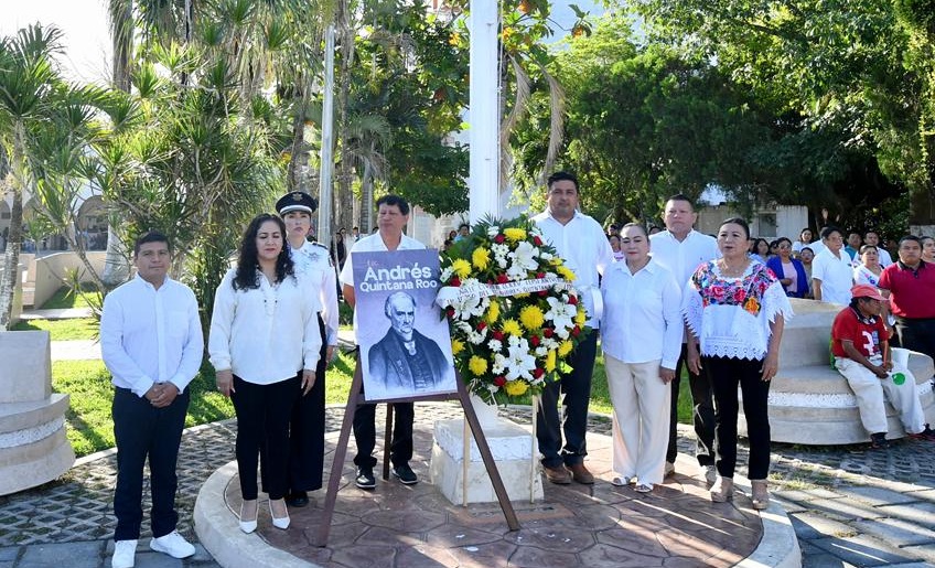 Felipe Carrillo Puerto.- Con un homenaje cívico realizado en el parque principal de esta cabecera municipal de Felipe Carrillo Puerto, el H. Ayuntamiento conmemoró este día, el 175 aniversario luctuoso del Lic. Andrés Quintana Roo, destacado prócer de la independencia de México, jurista, periodista e impulsor de la organización institucional de México, cuyos apellidos dan nombre al estado libre y soberano de Quintana Roo.