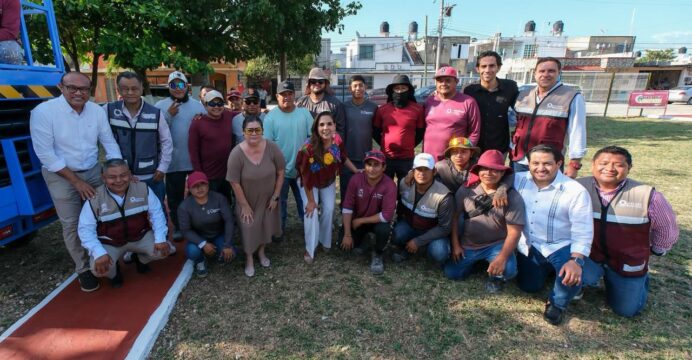 Chetumal.- La gobernadora Mara Lezama Espinosa anunció la rehabilitación integral del parque del fraccionamiento Los Almendros, como parte de las acciones del programa de rescate de espacios públicos “Que brille Chetumal”, acompañada de vecinas, vecinos y el equipo del INMAYA que realiza los trabajos.