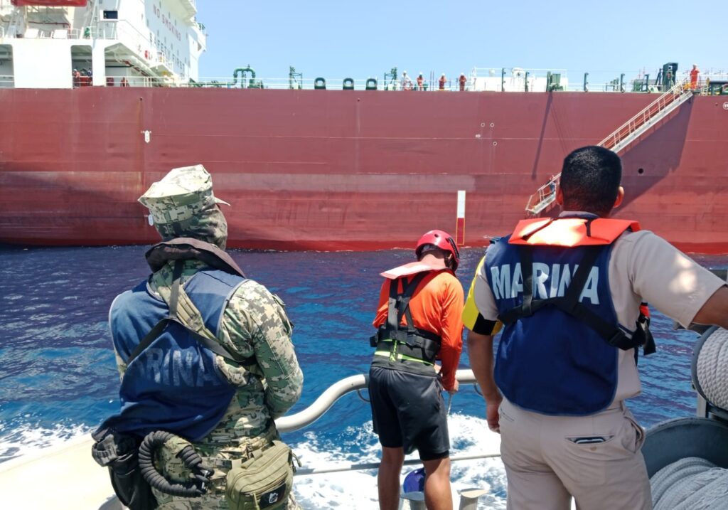 La intervención se realizó a través de la Armada de México, por conducto de la Quinta Región Naval, en coordinación con la Estación Naval de Búsqueda, Rescate y Vigilancia Marítima (ENSAR) Mujeres, luego de que se recibiera una solicitud de apoyo desde el buque.