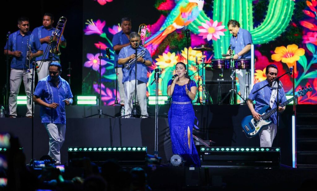“Los Ángeles Azules ya llegaron a Cancún y estamos felices de tenerlos en este 56 aniversario de nuestra ciudad. Estamos listos para celebrar en grande a Cancún, esta hermosa ciudad que nos une a todas y todos”, expresó desde el escenario.