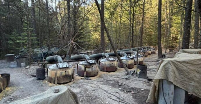 Las investigaciones, que se extendieron por al menos tres meses, incluyeron sobrevuelos con drones para ubicar los puntos de operación. En total, se identificaron varios complejos con equipo industrial, como hornos, calderas, contenedores de químicos y cilindros de gas.