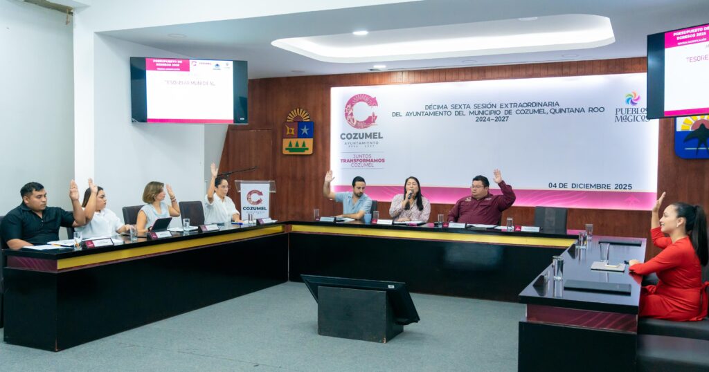 Cozumel, 04 de diciembre del 2025. – El presidente municipal, José Luis Chacón Méndez, encabezó la Décimo sexta sesión extraordinaria de Cabildo, en la que el cuerpo colegiado aprobó por unanimidad recursos destinados a equipar y modernizar el Centro de Acopio de Materiales Reciclables (CAMAR). Esta decisión permitirá que, por primera vez en su historia, Cozumel adopte el círculo virtuoso del reciclaje. Durante la misma sesión, también se designó el recinto oficial para la celebración del 176 Aniversario del Decreto de Creación del Pueblo de San Miguel de Cozumel, que tendrá lugar el próximo 10 de diciembre a las 9:00 de la mañana.