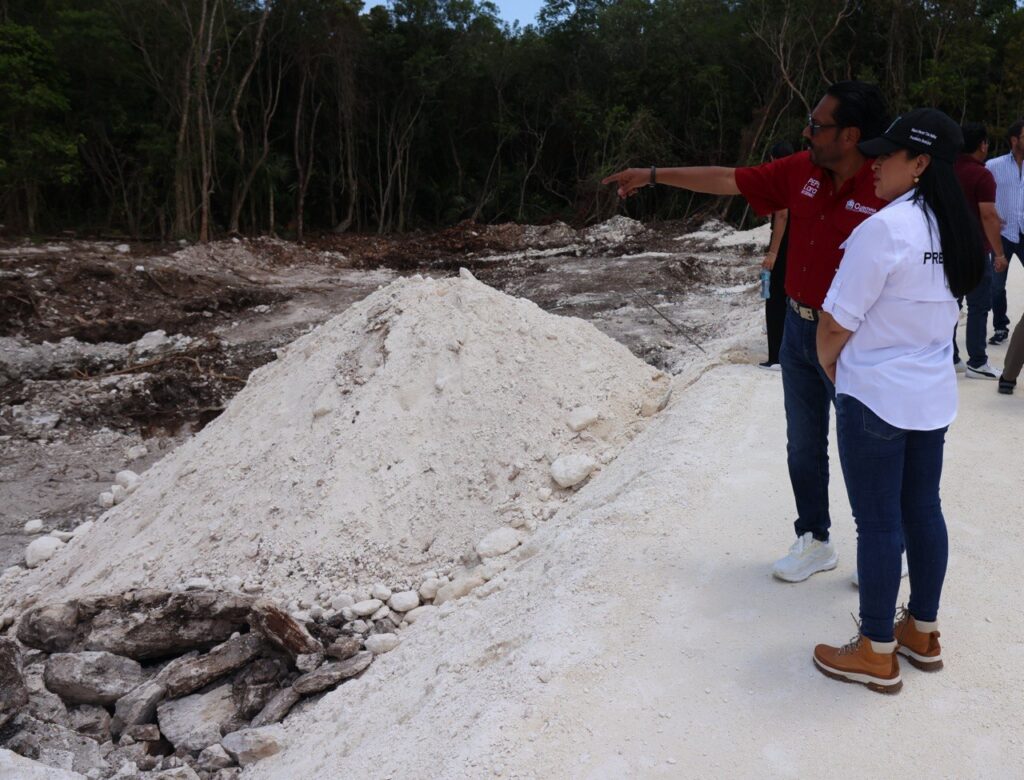 La presidenta municipal constató avances en el predio ubicado en la entrada a la Ruta de los Cenotes, donde se proyecta la nueva sede de la corporación policial.