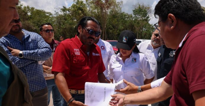 Puerto Morelos, Quintana Roo, a 20 de abril de 2026.— La presidenta municipal, Blanca Merari Tziu Muñoz, supervisó la preparación del predio donde se construirán las nuevas instalaciones de la Secretaría de Seguridad Ciudadana de Puerto Morelos, ubicado en la supermanzana 17, en los lotes del 1 al 13, en la entrada a la Ruta de los Cenotes, como parte del fortalecimiento de la infraestructura en materia de seguridad.