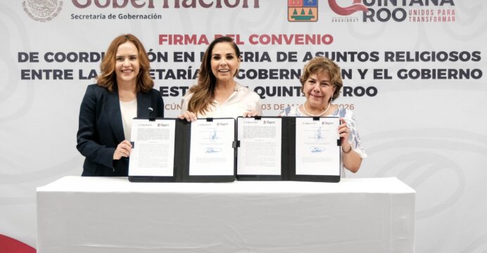 Previamente, la secretaria de Gobierno de Quintana Roo, Cristina Torres Gómez, explicó que el instrumento jurídico firmado es una actualización del Convenio de Coordinación suscrito en 2005 y que establecía acciones conjuntas orientadas a la promoción de la tolerancia religiosa, la cultura de paz y el respeto a la diversidad de creencias en la entidad.