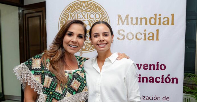 Chetumal, Q. Roo.- La Presidenta Municipal, Ana Paty Peralta, firmó el convenio marco de Coordinación para la Intervención y Modernización de Infraestructura Deportiva Comunitaria Rumbo al Mundial FIFA 2026, encabezado por la gobernadora, Mara Lezama, que contempla diferentes acciones del “Proyecto Mundial Social”, tales como renovación de espacios para la práctica del deporte y promoción de la participación ciudadana para una mejor cohesión social, ante el escenario del inicio de la fiesta futbolística y la celebración de México como uno de los tres países sede.