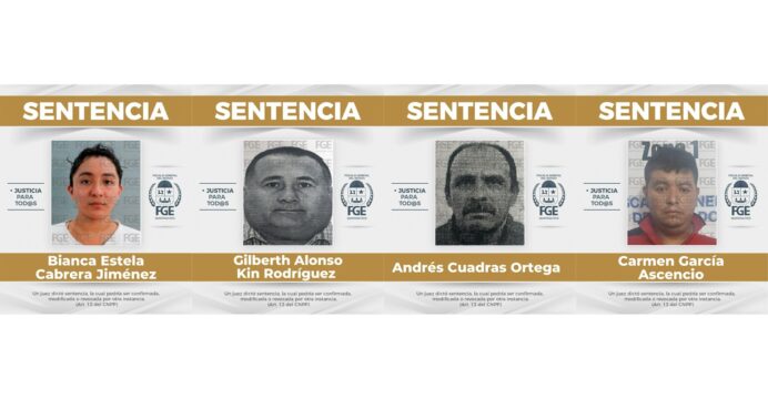 La Fiscalía General del Estado informa que los sentenciados son Carmen García Ascencio, Andrés Cuadras Ortega, Gilberth Alonso Kin Rodríguez y Bianca Estela Cabrera Jiménez