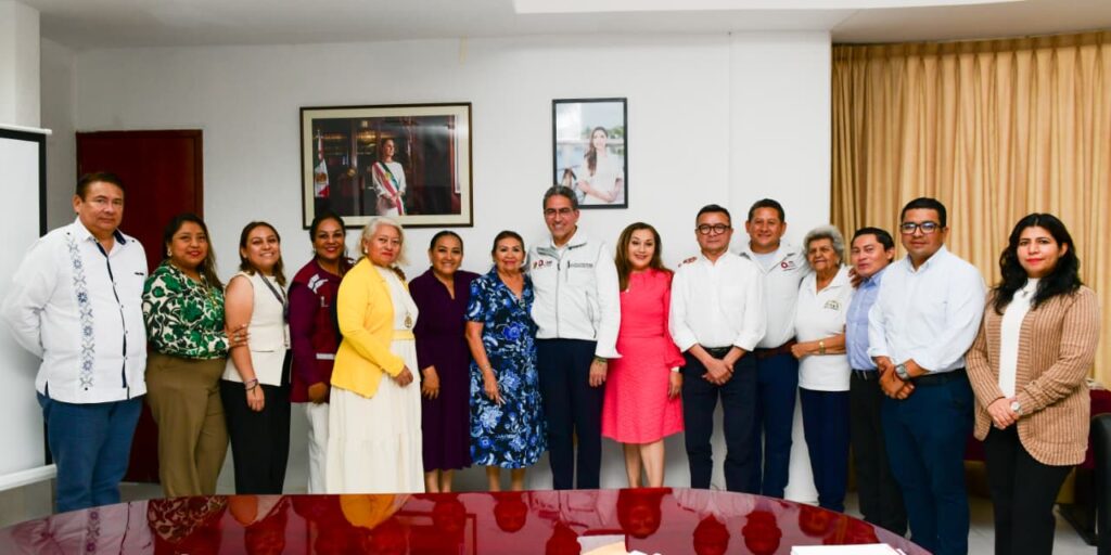 Cancún.- La secretaria de Educación, Elda Xix Euán, y el secretario de Salud, Flavio Carlos Rosado, sostuvieron una reunión de trabajo con jefes de sector de Preescolar y de Educación Especial de la zona norte, abordando temas prioritarios para el fortalecimiento de la salud de alumnas y alumnos, así como de la salud mental de las maestras y maestros.