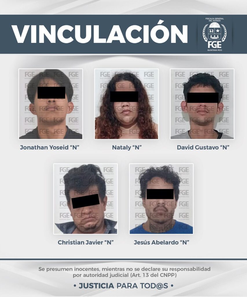 En el municipio de Playa del Carmen, en diversas audiencias, fueron vinculados a proceso Alexis Eduardo “N”, Jonathan Yoseid “N”, Fernanda Rubí “N”, David Gustavo “N”, Nataly “N”, Christian Javier “N” y Jesús Abelardo “N”, detenidos por agentes de la Policía de Investigación en distintos puntos del municipio.